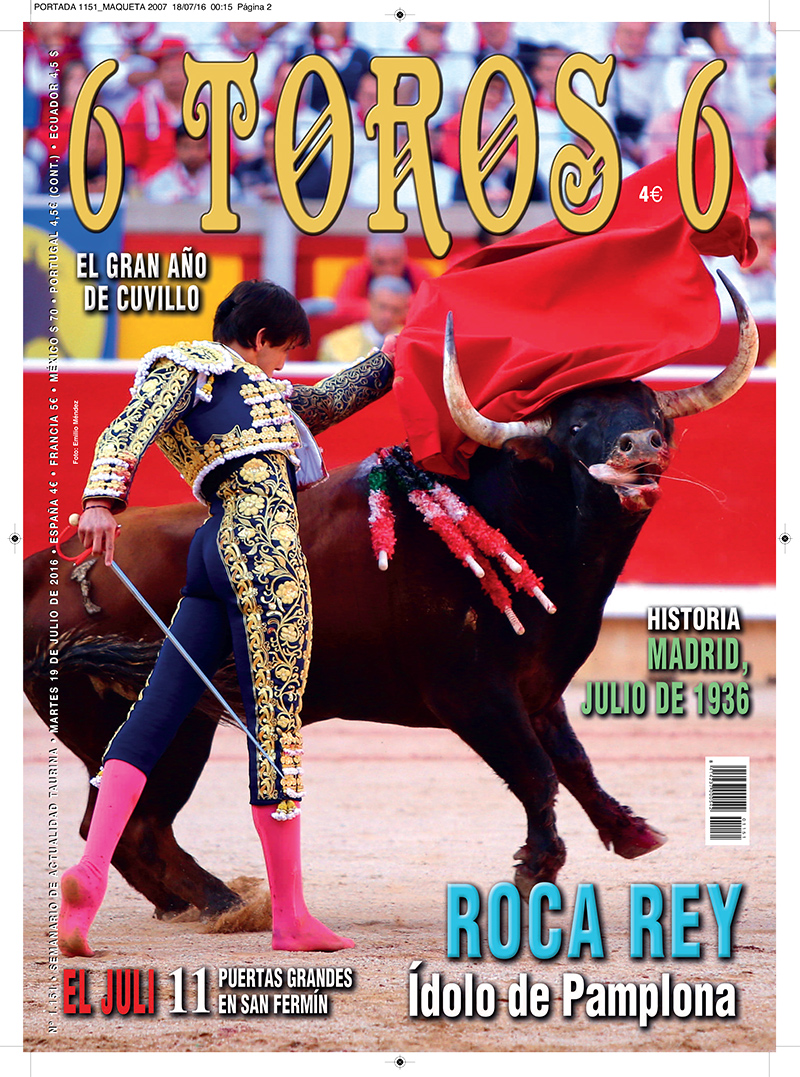 El diestro peruano Andrés Roca Rey en la portada de la Revista 6 Toros 6 el martes 19 de julio de 2016. Foto por Emilio Méndez