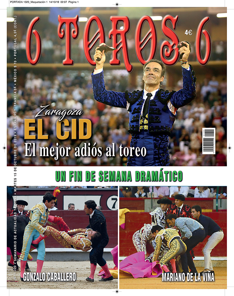 El Cid se despidió de Zaragoza en octubre del 2019, siendo portada de la Revista 6 Toros &. Foto por Emilio Méndez.